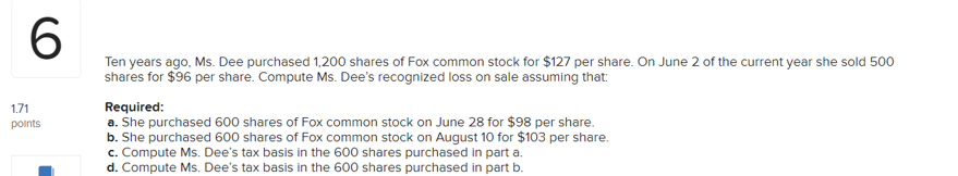 Solved 6 1 71 Points Ten Years Ago Ms Dee Purchased 1 200 Chegg Com
